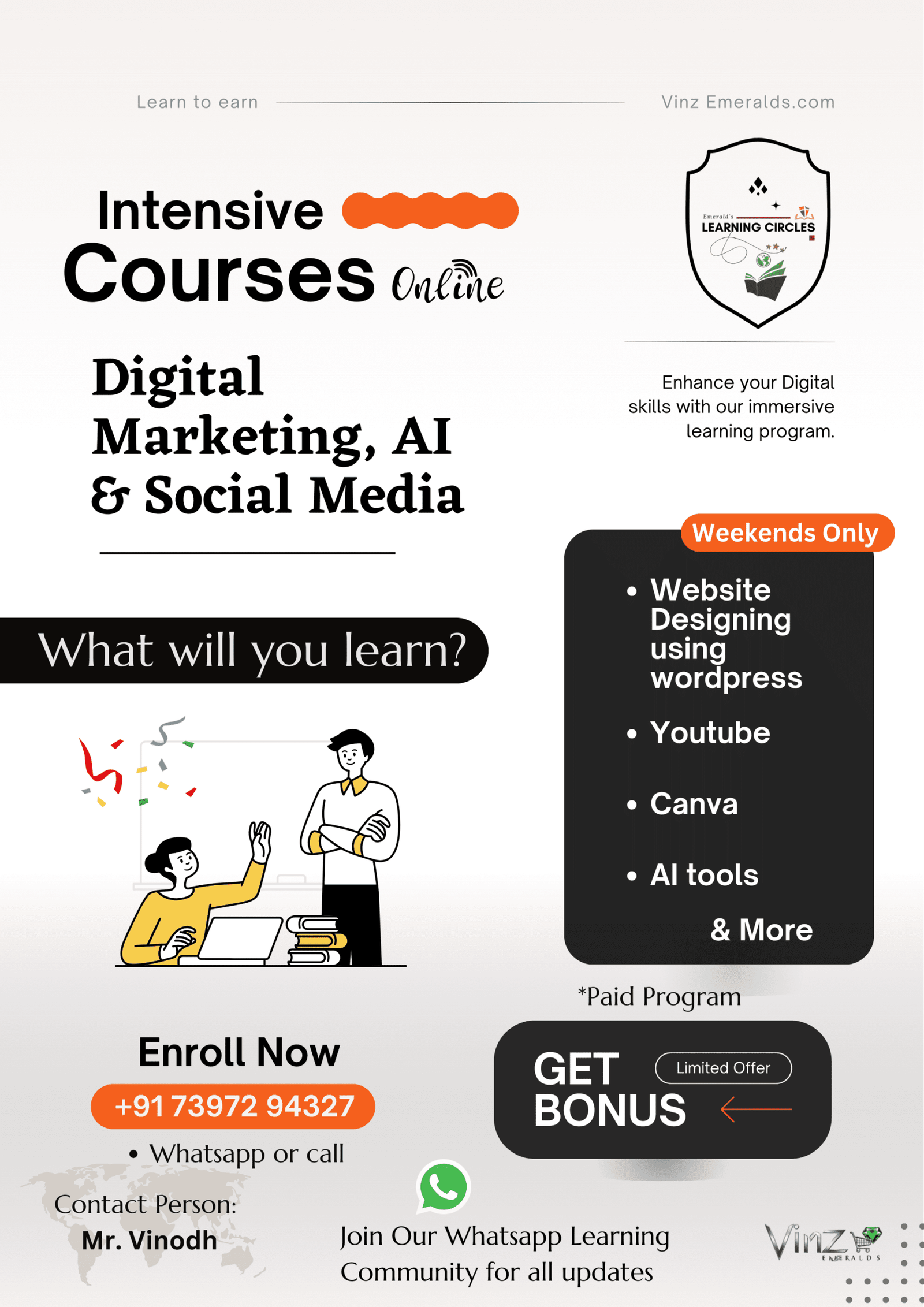 These are all paid programs and are offered with an affordable yet right prices. Connect to us, to learn more about the courses and training, every month. Also to join our whatsapp community for all updates.